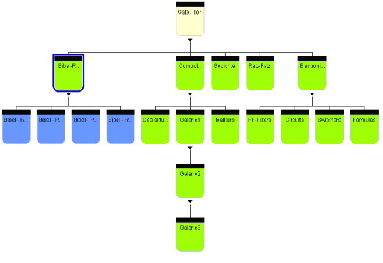 Dies ist eine Multisite, 5 Themen werden über ein Tor angewählt. Jedes Thema hat seine eigene Startseite. Um das Thema zu wechseln, muss man zur Startseite oder zum Tor zurück.